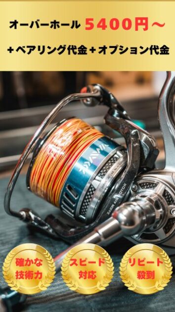メインはシマノ・ダイワ・アブガルシアです。その他のメーカーも対応可能ですが、その他のメーカーは直接頼んでいただいた方がメリットがある場合も多いです。一度お気軽にご相談ください。