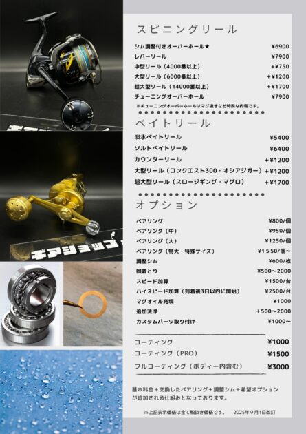 当店は基本料金+交換したベアリング+調整シム+ご希望のオプションによって決まります。