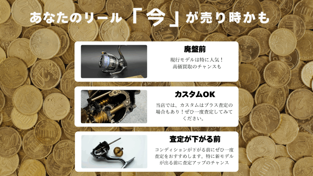 買取対象外のリールは、オーバーホール品と一緒にご返送いたします。