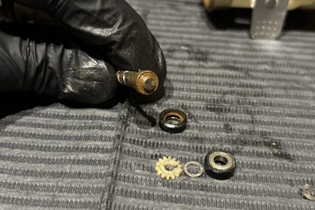 今回はベアリング交換のみで大丈夫でしたが浸水によるグリス抜けはギアに負担が多くかかりパーツ交換が必要になることも少なくありません。