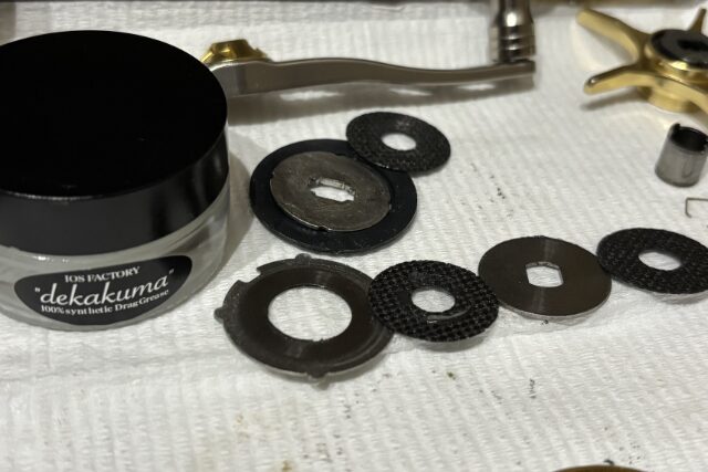 ドラググリスのおすすめとしてソルト系はiosfactoryのドラググリスdekakuma。粘り、かついざという時にはスムーズなドラグ性能を手助けしてくれます。