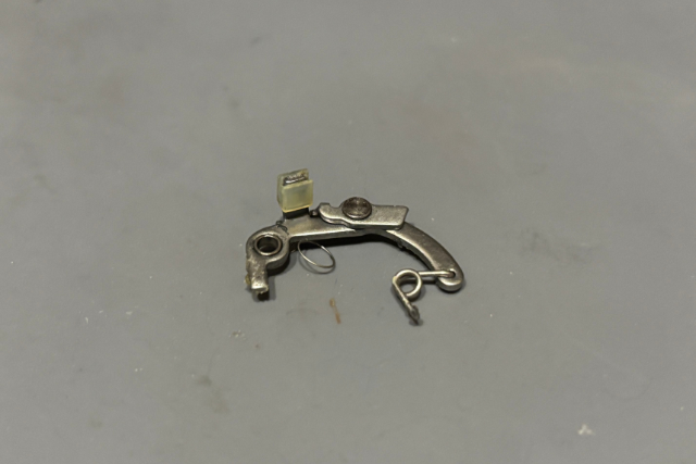バネやブレーキ板などのパーツを調整しながら組み上げていきます。
