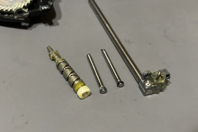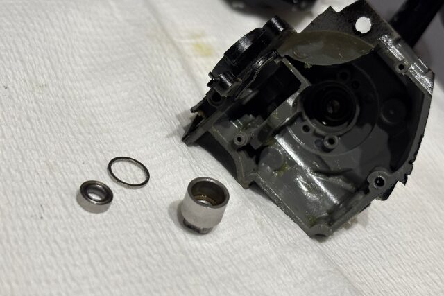分解完了です。内部などのパーツ破損はなくベアリングの交換のみで特にパーツ交換は必要ない状態でした。