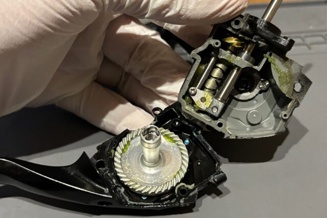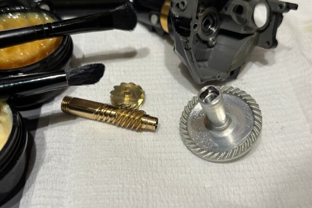 洗浄後は新しいグリスを各ギア部に塗布していきます。