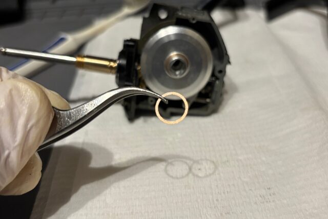 作業を行なっていきます。スプールを外し、ローターを外すとブレーキコアが出てきます。