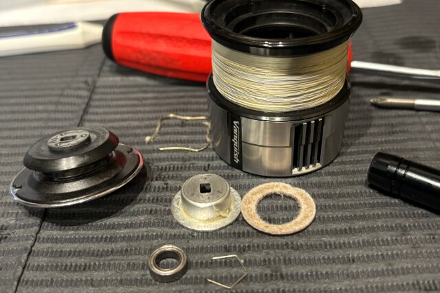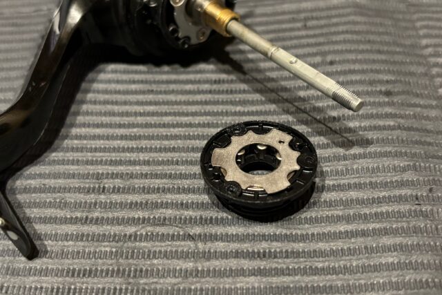 スプール内部のベアリング交換とドラグ座金もメンテナンスしていきます。